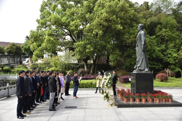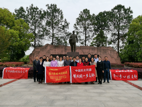 4月13日上午,民盟黄冈闻一多支部、民盟常州李公朴支部、民盟常州科教城综合支部来到黄冈市浠水县闻一多纪念馆开展活动,活动在庄严肃穆的国歌声中开始,近三十名盟员在闻一多纪念馆前高唱《中华人民共和国国歌》,并向闻一多先生雕像敬献花篮,向闻一多先生行三鞠躬礼,民盟常州市委员会原主委、李公朴支部名誉主委赵忠和代表三个支部朗读祭文,祭奠活动后,大家一起步入闻一多纪念馆参观学习闻一多生平事迹,盟员们深受教育,表示要弘扬爱国奋斗精神、建功立业新时代。