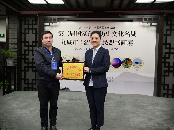 开幕式在绍兴市非遗馆举行。民盟浙江省委副主委谢志坚,中共绍兴市委常委、统战部部长叶伟红,绍兴市政协副主席、民盟绍兴市委主委徐青松等出席活动并向九城市书画展的举办和各位领导嘉宾的到来表示祝贺与欢迎。荆州市政协副主席、民盟荆州市委主委林红代表下一届主办城市做表态发言,表示荆州将以最大的努力办好第三届书画展,为提高九城市盟员书画艺术的整体创作水平,促进民盟市州组织之间的学习交流,加强之间的合作友谊,促进社会主义文化艺术的繁荣与发展作出应有贡献。会上,民盟荆州市委专职副主委谭文代表荆州接受主办城市会匾。