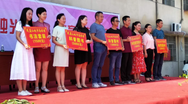 启动仪式上,民盟仙桃市委向该校捐赠了科普器材、体育器材、书法耗材、科普图书等价值2万元的物资,并举行了捐赠仪式。