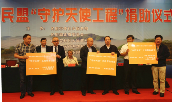 6月20日,由民盟中央社会服务部、民盟湖北省委员会、西门子医疗系统有限公司主办的“守护天使工程”捐助仪式在神农架林区联合举行。全国人大常委会委员、民盟中央副主席龙庄伟,湖北省人民政府副省长、民盟湖北省委主委杨云彦,西门子医疗临床治疗系统副总裁浦峥嵘出席捐助仪式。