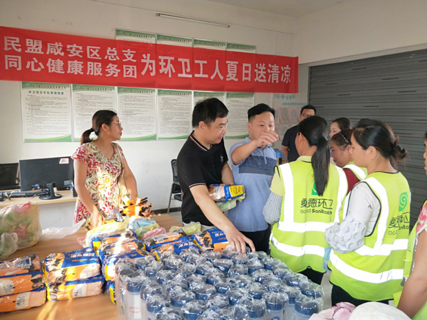 当前位置:首页 > 基层动态8月20日清晨,咸安区总支“同心健康服务团”的盟员到咸安区环卫所看望、慰问了咸宝路片区和通江大道片区的环卫工人,为环卫工人们送去了价值五仟余元的防暑降温用品和药品。