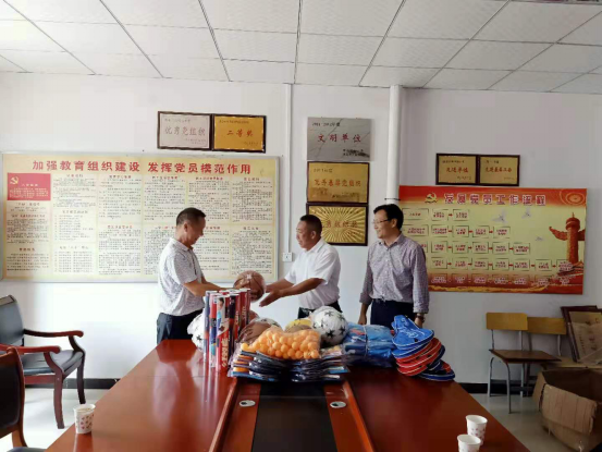 沈其文代表咸宁民盟为慈口乡中心学校送去体育用品