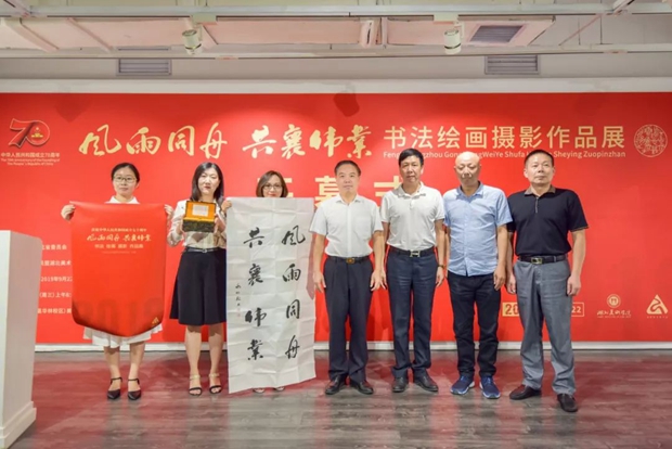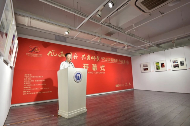 当前位置:首页 > 省盟要闻 为庆祝中华人民共和国成立70周年、中国共产党领导的多党合作和政治协商制度确立70周年,9月11日上午,由民盟湖北省委主办,湖北美术学院、民盟湖北美术院协办的“风雨同舟 共襄伟业”主题书画摄影作品展在湖北美术学院昙华林美术馆开幕。省政府副省长、民盟湖北省委主委杨云彦,民盟中央宣传部副部长郑洁,省政府副秘书长管俊,湖北美术学院书记梁远钢、院长许奋,中共湖北省委统战部副部长汪海涛等出席开幕式。民盟湖北美术院院长徐勇民主持开幕式。
