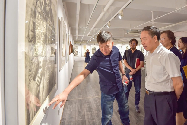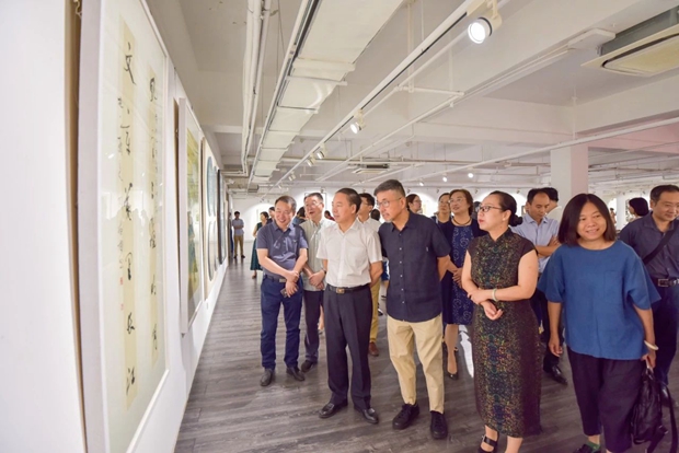 开幕式结束后,各位领导同与会艺术家和基层盟员代表合影并参观展览。