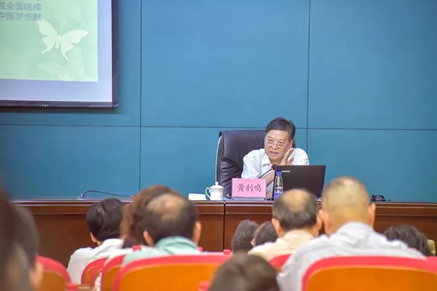 民盟省委副主委、湖北省社会主义学院原院长黄利鸣结合民盟省委正在开展的“不忘合作初心,继续携手前进”主题教育活动,作了题为“坚定不移走中国特色社会主义政治发展道路”的辅导报告。黄利鸣副主委从中国共产党与中国民主同盟七十多年风雨同舟合作历程开始,结合当前世界错综复杂的国际形势,列举大量事实,进行横向比较,有力地阐释和严谨地论证了中国特色社会主义道路是历史的选择,是人民的选择,要坚定不移地走下去。