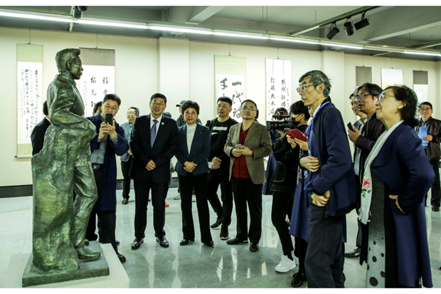 当前位置:首页 > 市州传真11月9日,由黄冈市委宣传部、黄冈市委统战部、民盟黄冈市委主办的"纪念闻一多诞辰120周年书法绘画作品展"在黄冈师范学院闻一多美术馆举行,民盟湖北省委副主委、民盟黄冈市委主委、黄冈市副市长陈少敏;国家社会科学院近代史研究所教授、闻一多孙子闻黎明;北京语言大学副教授、闻一多曾孙女闻亭;黄冈师范学院书记王立兵,校长陈向军等领导同志和专家学者及民盟师院总支、市直支部、黄州区、团风县支部盟员参观了此次作品展。