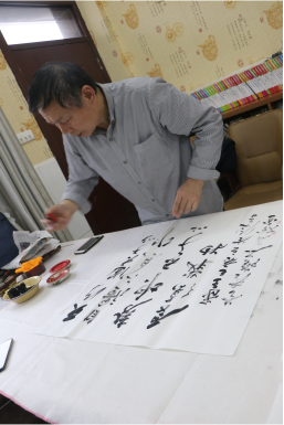 天道酬勤,春华秋实。莲花小学图书室内地面摆放民盟书画家的书画作品越来越多了,长达三个多 小时的书画创作,洋溢着浓厚的文化气息。 民盟鄂州美术院院长宋哲金说,今天开展这次活动,就是要把“不忘合作初心,继续携手前进”主题教育学习活动与实践相结合,增强盟员凝聚力和奉献精神,从而使民盟鄂州美术院的送文化、送书画活动更加丰富多彩,更有新意,更有特色,更有成效。(何汉华)