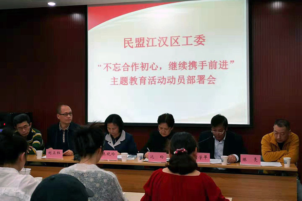 会议由区工委副主委胡学早主持。副主委刘卫红作宣读了《民盟武汉市委开展“不忘合作初心继续携手前进”主题教育活动实施方案》,工委委员刘青云宣读了《民盟江汉区工委主题教育活动实施细则》。