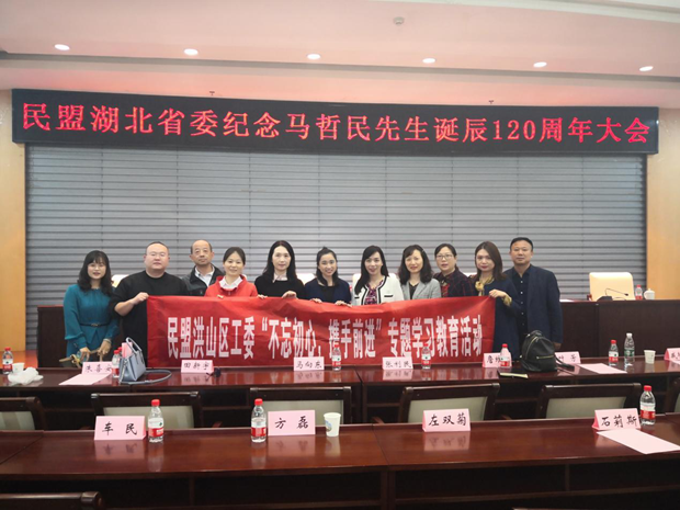 当前位置:首页 > 基层动态为进一步了解民盟历史,学习民盟先辈精神,为继续开展“不忘合作初心,继续携手前进”主题教育活动,10月29日,民盟洪山10名盟员在主委叶芳的带领下,集体参加了民盟省委纪念马哲民先生诞辰120周年大会活动。省政府副省长、民盟省委主委杨云彦,民盟中央组织部部长蔡葵,中南财经政法大学党委书记栾永玉出席会议并讲话,马哲民先生外孙马侠,以及来自省直基层盟员代表120余人参加此次大会。会议由民盟省委专职副主委朱梅主持。