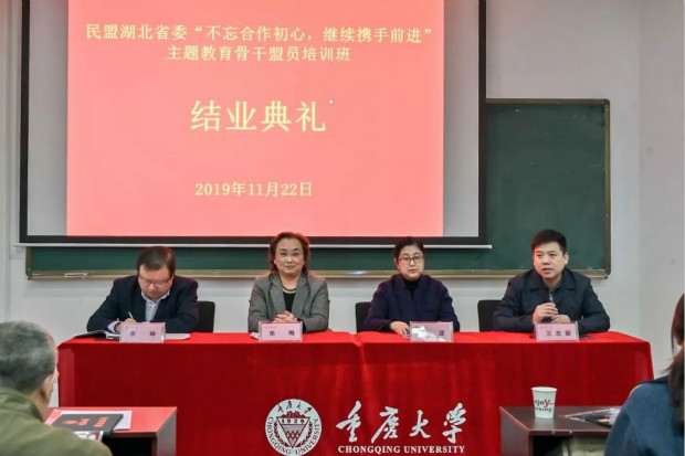 当前位置:首页 > 省盟要闻 为深入学习贯彻习近平新时代中国特色社会主义思想,夯实共同思想政治基础,深化“不忘合作初心,继续携手前进”主题教育活动,进一步提高民盟省委骨干盟员的“五种能力”建设,11月18日至22日,民盟湖北省委在重庆大学举办“不忘合作初心,继续携手前进”主题教育盟员骨干培训班。来自全省各市州、省直在汉基层组织的50余名盟员骨干参加了培训。省政协副秘书长、民盟省委专职副主委朱梅,重庆大学继续教育学院原党委书记、教授冯海亮出席开班仪式,民盟省委组织部部长侯波主持开班仪式。