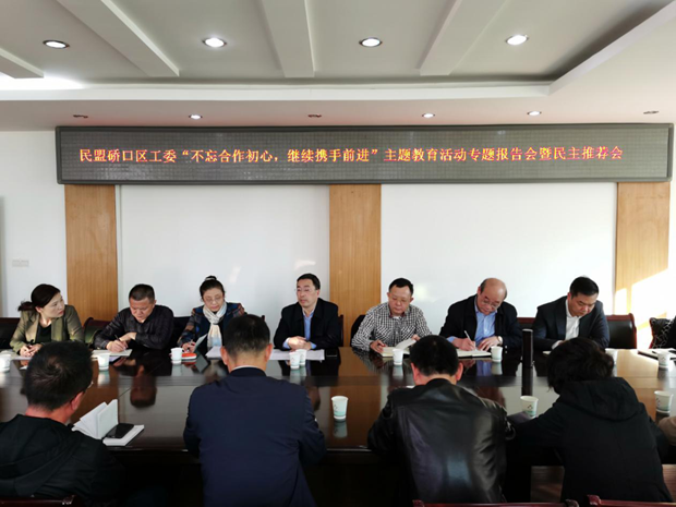 当前位置:首页 > 基层动态11月15日,民盟硚口区工委召开“不忘合作初心,继续携手前进”主题教育会暨民主推荐会。民盟武汉市委副主委程宏刚,民盟武汉市委组织部部长郭宁,硚口区工委主副委及盟员代表40余人参加会议。硚口区统战部副部长刘军应邀出席。