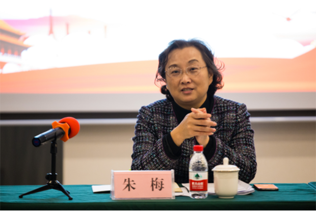民盟省委专职副主委朱梅在讲话中充分肯定了民盟荆门市委开展“不忘合作初心,继续携手前进”主题教育活动的成效,对座谈中针对民盟湖北省委领导班子及成员提出的意见建议一一进行回应和答复,并就进一步推进主题教育活动深入开展讲了明确意见。她指出,在当前中国共产党正在深入开展“不忘初心,牢记使命”主题教育的特殊时间节点,我们开展“不忘合作初心,继续携手前进”主题教育活动,不仅是新时代民盟加强思想政治建设的一次总动员,也是新时代民盟加强自身建设的迫切要求,更是引导广大盟员积极参政履职,充分发挥我国新型政党制度效能的学习实践。她强调,要通过开展好此次主题教育活动,提高政治站位、增强责任意识、提升履职能力,引导盟员切实把习近平新时代中国特色社会主义思想学深悟透,深刻领会其时代特征和实践价值,不断增强“四个意识”,坚定“四个自信”,做到“两个维护”,始终在政治立场、政治方向、政治原则和政治道路上同以习近平同志为核心的中共中央保持高度一致,在习近平新时代中国特色社会主义思想旗帜下继续携手前进。