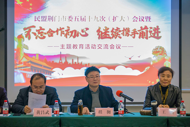 当前位置:首页 > 市州传真12月4日,民盟荆门市委在“荆门社区·盟员之家”召开五届十九次(扩大)会议暨“不忘合作初心,继续携手前进”主题教育活动交流会议。市委主委程彻主持会议并讲话,市委委员、各基层组织负责人、盟内的市人大代表和政协委员,部分骨干盟员,以及2019年度新入盟盟员共计50余人参加会议。
