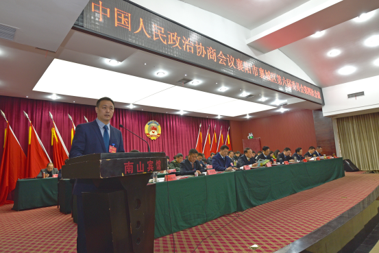 在区政协全会上,总支主委李强代表民盟襄城总支做《关于进一步提高我区居家养老服务水平的建议》。