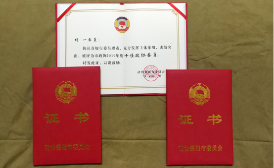 2019年,杨一委员立足本职工作,始终以饱满的热情和强烈的责任感履行一个政协委员的职责,积极参政议政,献言献策,以认真的态度、扎实的作风,有效履职尽责,充分发挥了一名政协委员应有的作用。