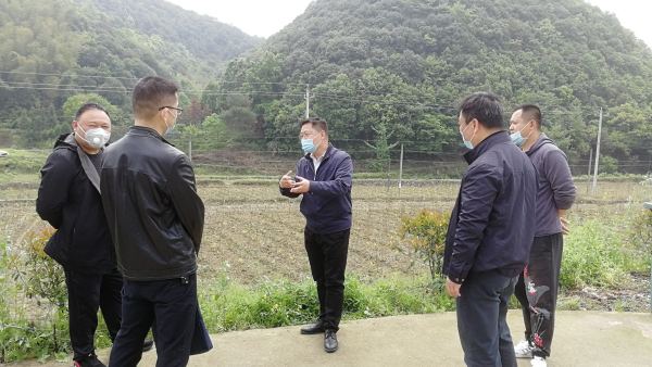 郭双喜和黄石交投园林花木公司经理朱智一行实地查看五合村张陈苗圃基地,详细了解五合村苗木的种植情况和苗圃产业发展思路,并与村“两委”班子和扶贫工作队进行座谈,村支书华允新介绍了五合村疫情防控、复工复产及脱贫攻坚等工作情况。