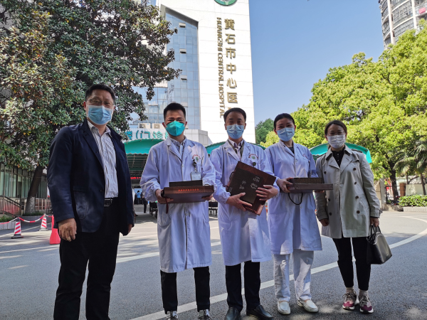 当前位置:首页 > 市州传真为感谢广大盟员医务工作者为打赢疫情防控战作出的重大贡献,感恩这些时代的英雄和最可爱的人,4月26日,受民盟省委委托,市委会主委郭双喜带着省委会用特殊盟费定制的慰问品,来到黄石市中心医院、黄石市中医院、黄石市爱康医院和大冶市中医院、大冶市人民医院,看望慰问13位在疫情防控一线努力工作的的黄石盟员医护人员。