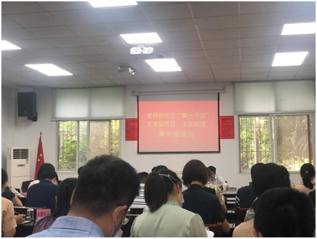 当前位置:首页 > 基层动态6月11日下午,汉阳区建桥街召开了第一书记、党建指导员、主任助理集体座谈会,共同分享经验、交流成果、探讨工作。区委常委、区委办公室主任郭笑撰出席会议。民盟汉阳区工委在建桥街各社区挂职的9名主任助理参加座谈发言。
