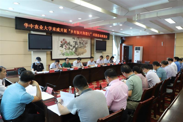 在对接调研过程中严建兵介绍,华中农业大学开展“乡村振兴荆楚行”目的是要落实习近平总书记给全国涉农高校的书记校长和专家代表回信精神,以立德树人为根本,以强农兴农为己任,拿出更多科技成果持续性开展社会服务;培养更多知农爱农新型人才,引导学校师生能充分理解中国农业农村发展的真正需求是什么,为实现农业农村现代化、推进乡村全面振兴等作出新的更大的贡献。随行调研人员从组织楚才服务优势特色产业、依托项目推进校企合作和成果转化、疫后重振调研宣讲湖北行动、荆楚“三农”人才培训行动、留鄂就业创业促进行动、与咸宁重点非公有制企业开展“携手共建、助力重振”党建活动等六个方面详细介绍了华中农业大学“乡村振兴荆楚行”服务咸宁工作实施方案。