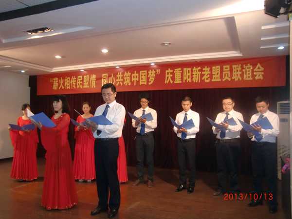 10月13日上午,民盟荆州市委举行以“薪火相传民盟情,同心共筑中国梦”为主题的新老盟员联谊会。七十余名新老盟员欢聚一堂,共庆重阳。在《祝福祖国》的歌声中,联谊会拉开序幕。十名青年盟员以高昂的激情表演了诗朗诵《我是民盟人》;四名老中青盟员代表深情讲述了在民盟的成长经历,抒发了对民盟组织的深厚情感;十名新老盟员代表结成对子,老盟员向新盟员赠送了中国梦辅导书籍,并表示将把对新盟员的期望化为实际的传帮带行为,让新盟员能尽快接过历史的接力棒。