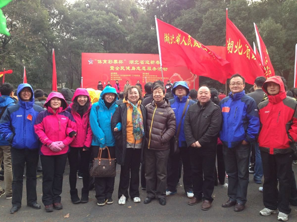 登磨山,辞旧迎新。12月26日上午,体育彩票杯湖北省第七届迎新春登磨山暨全民健身志愿服务活动在武汉举行,来自全省100多个省直机关单位的2000余名干部职工,统一着装,以矫健的步伐、整齐的阵容,登高迎接2014年的到来。本次登山健身活动除群众健步走普通组外,还设置了竞速组比赛。民盟省委机关干部参加了这两个组的活动,并在竞速比赛中获得了三等奖的好成绩。