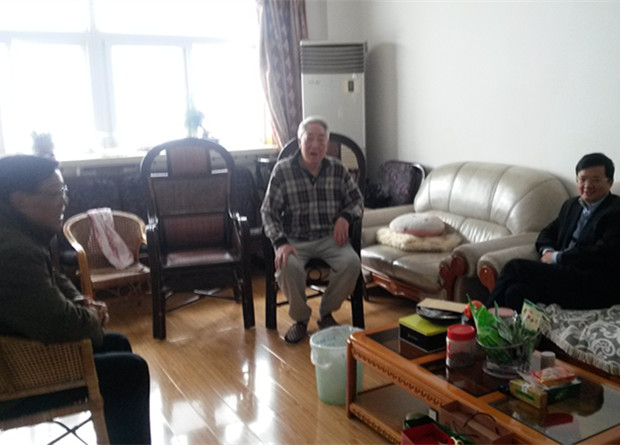 春节前夕, 郭生练主委,王耀辉副主委,秘书长朱梅看望慰问民盟省委原主委韩南鹏。