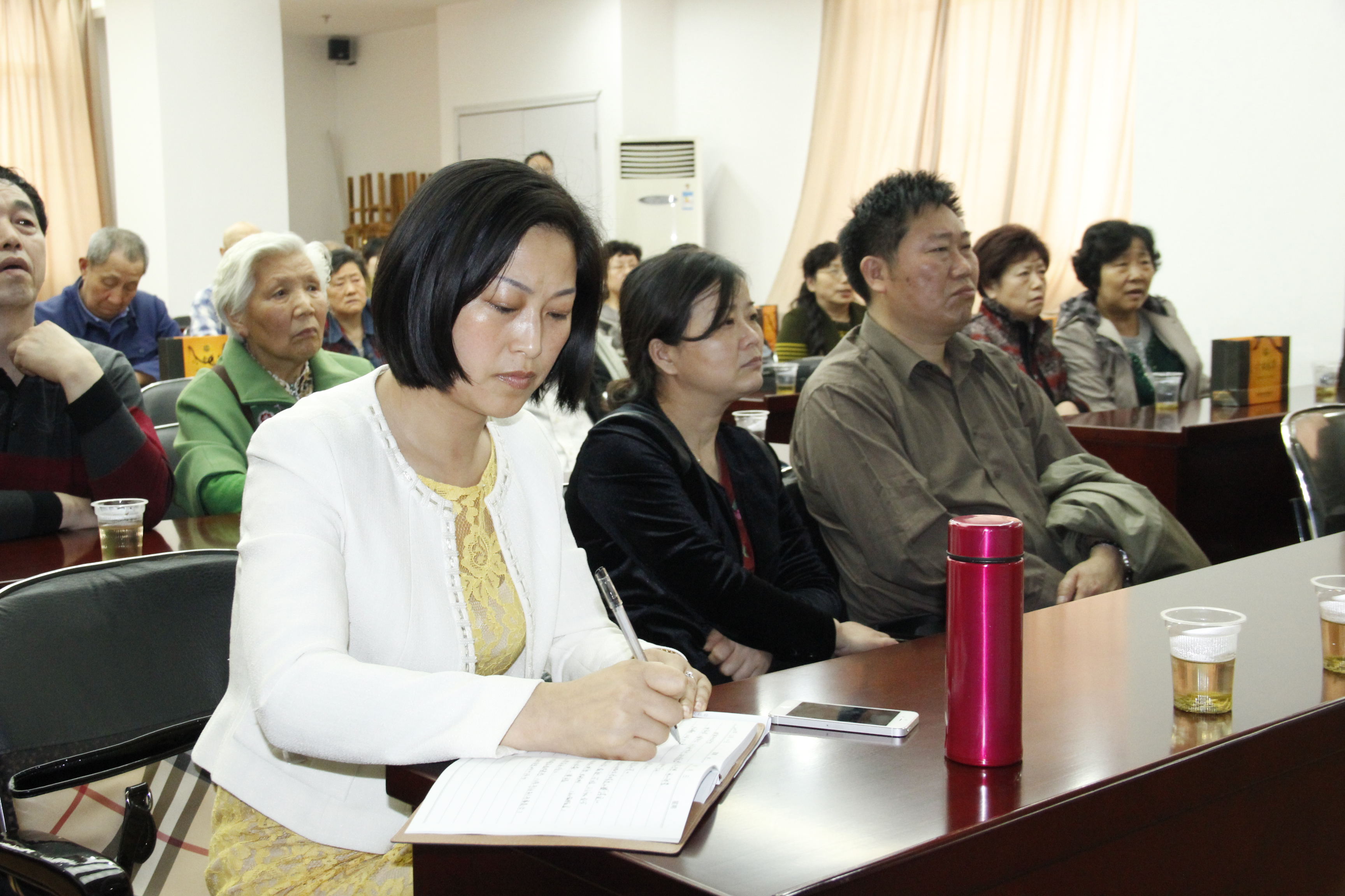 4月10日下午,民盟宜昌市委会在宜昌市图书馆五楼会议室开展中老年健康及常见慢性疾病防治知识讲座活动。图为参加活动的中老年人在认真听专家讲座。
