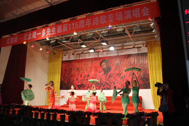11月22日下午,围绕纪念闻一多先生诞辰115周年的主题活动“闻一多诗歌演唱会”在浠水县闻一多中学举行。民盟省委专职副主委王耀辉、秘书长朱梅应邀前往观看。