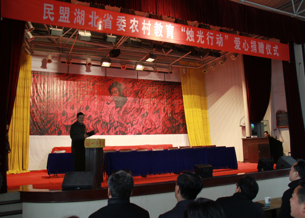 1月23日,民盟湖北省委“烛光行动”捐赠仪式在浠水县闻一多中学隆重举行。湖北省人民政府副省长、民盟湖北省委主委郭生练在捐赠仪式上致辞。