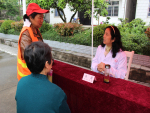 4月18日上午,民盟西陵区基层委员会、市旅游局、三峡旅游度假区管委会在南津关村广场联合举办了“同心西陵,共建家园”社会服务活动。图为葛洲坝中心医院妇产科主任朱莉在现场与患者交流。