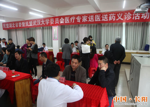 4月23日上午,民盟湖北省委、民盟武汉大学委员会组织医疗专家,在长阳县职教中心开展义诊及健康咨询活动,来自省人民医院、协和医院、省中医院、武昌妇幼保健院的10位主任医师为长阳县200多位教育工作者提供肿瘤科、神经科、呼吸内科、肾内科、普外科、中医科、康复科、妇科等专科诊疗和健康咨询服务,深受广大教职工的热烈欢迎和好评。