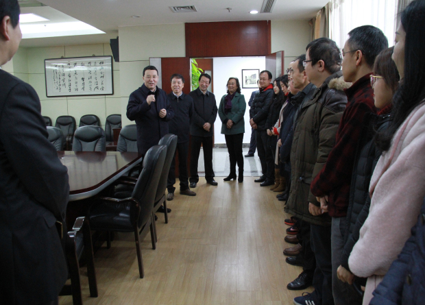 2月22日上午,省委常委、统战部长尔肯江▪吐拉洪走访民盟省委机关,与机关干部一一握手、亲切交谈。副省长、民盟省委主委杨云彦代表民盟省委表示热烈欢迎。