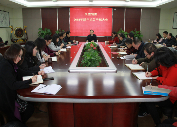 2月22日,正月初七,是农历春节长假后的第一个工作日,当日下午,民盟省委召开2018年新年机关干部大会,副省长、民盟省委主委杨云彦出席会议,传达省委、省政府2月22日上午召开的全省坚决打好三大攻坚战推进会以及省委书记蒋超良、省长王晓东讲话精神,并向大家致以新春祝福,勉励大家以更饱满、更振奋的精神状态投入新一年的工作,以新气象、新作为迎接新时代。民盟省委副主委马骏、叶春松出席,秘书长朱梅主持会议。
