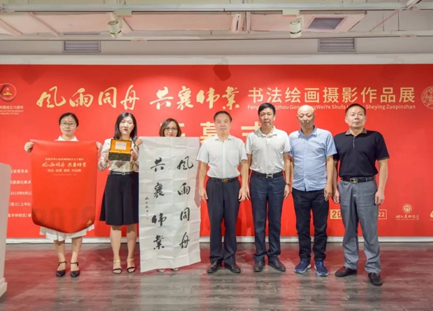 为庆祝中华人民共和国成立70周年、中国共产党领导的多党合作和政治协商制度确立70周年,9月11日上午,由民盟湖北省委主办,湖北美术学院、民盟湖北美术院协办的“风雨同舟 共襄伟业”主题书画摄影作品展在湖北美术学院昙华林美术馆开幕。省政府副省长、民盟湖北省委主委杨云彦,民盟中央宣传部副部长郑洁,省政府副秘书长管俊,湖北美术学院书记梁远钢、院长许奋,中共湖北省委统战部副部长汪海涛等出席开幕式。民盟湖北美术院院长徐勇民主持开幕式。